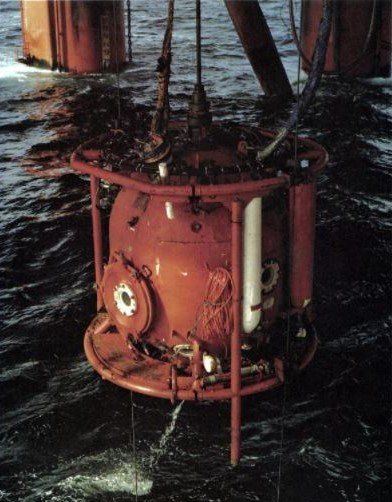 잠수부들은 심해에서 작업을 마친 뒤 다이빙벨(그림 아래에 동그란 것)을 타고 심해에서 고압상태 그대로 수면으로 올라오는데,